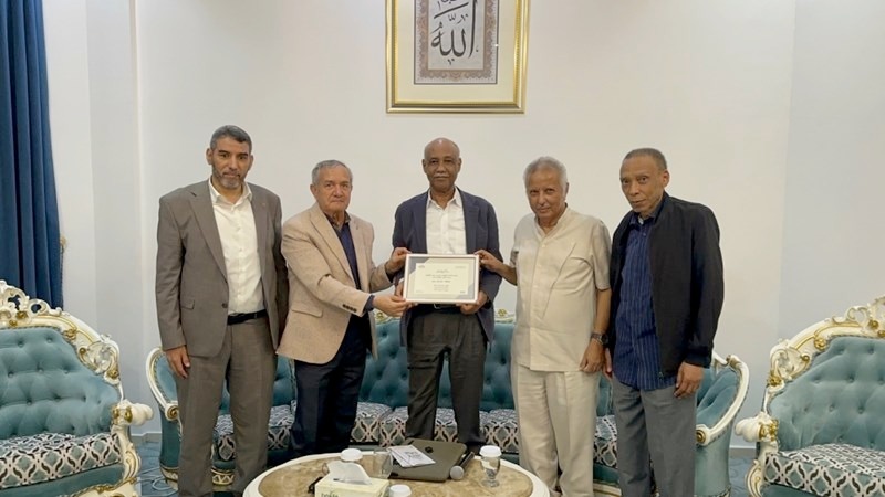 وفي ختام الفعالية، كرّم الدكتور عمر عبد العزيز، يرافقه خليفة الشيمي ومحمد ولد سالم، الخطاط تاج السر حسن، تقديرًا لإسهاماته في خدمة فن الخط العربي، قبل أن تُلتقط صورة جماعية توثق هذه الأمسية.